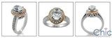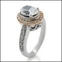 Elegant two tone ring, set with AAA high quality oval center stone in prongs, surrounded by pave set stones in rose gold base. Gallery underneath. Heavy solid shank.