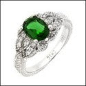 Estate 1.5 Oval Emerald Color Engraved Shank Cubic Zirconia Cz Ring