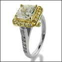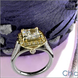 Antique looking ring in two-tone gold with AAA high quality 1.5-carat princess cut center stone surrounded by pave set stones. Band it self is in 14k white gold with pave set stones on the sides