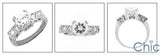 A beautiful ring with an engraved detailed shank and high quality diamond cubic zirconias set in double wire prong setting with round cubic zirconias in pave setting.