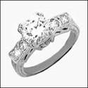 1.5 Round Center Engraved Shank Cubic Zirconia Engagement Ring 14k White Gold