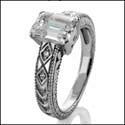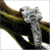 Estate 1 Ct Emerald Center Engraved Cubic Zirconia Cz Ring