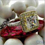 Estate 1. Ct Princess Two Tone Halo Cubic Zirconia Cz Ring