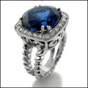 Estate 10 Ct Round Sapphire Rope Shank Cubic Zirconia Cz Ring