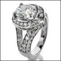 Elegant ring set with AAA quality 2.5 oval in the center, surrounded with pave set round stones. The spited shank is covered with pave set stones half way around the band.