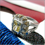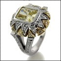 2 Ct Canary Radiant Bezel Two Tone Cubic Zirconia Pave 14K Gold Ring