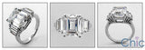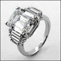 A stylish engagement ring with high polished solid shank and high quality emerald cut cubic zirconias in prong setting.