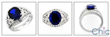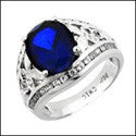 An elegant ring with a high polished solid shank and high quality oval sapphire cubic zirconia center stone in prong setting along with round diamond cubic zirconias set in channel setting on the sides.