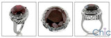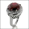 Royal design set with AAA high quality Ruby color round center stone set in 4 prongs, surrounded by round pave set stones... Elegant gallery under the main stone. Heavy piece.