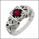 Estate .75 Round Ruby Cenrter Paves Cubic Zirconia Cz Ring