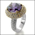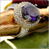 Amethyst Oval 5 Carat Cubic Zirconia Two Tone Gold Pave Set Ring