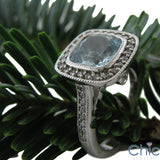 Estate Aquamarine Cushion Halo Cubic Zirconia Cz Ring