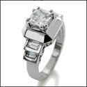 Estate Asscher 1 Ct Center Baguettes Cubic Zirconia Cz Ring