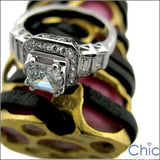 Asscher Cut 1 Ct Center Double Prongs Cubic Zirconia 14k White Gold Ring