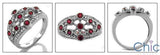 A attraCt ive beautiful anniversary ring with polished solid shank, with combination of ruby and diamond color round cut high quality cubic zirconia stones set burnishes pave setting on the ring and on the split shank.