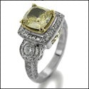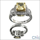 Canary Cushion 1.5 Cubic Zirconia Two Tone Gold Pave Bezel Cz Ring