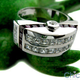 Art Deco Style Channel Ruby Diamond Princess - Cubic Zirconia 14K White Gold Ring