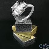 Emerald Cut 3 Carat Cubic Zirconia Center Channel Baguettes 14K White Gold Ring