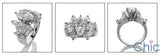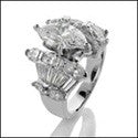 2 carat marquis diamond quality cubic zirconia center set in prongs, band has a combination of baguettes and marquis in channel setting.