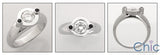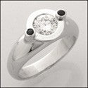 A unique design with solid high polished shank with round shaped high quality white cubic zirconia in bezel setting and two round blue cubic zirconias in bezel tube settings.