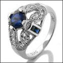 Estate Round Sapphire Pave Cubic Zirconia Cz Ring