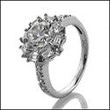 Star Shaped Center Baguette Round Cubic Zirconia Cz 14K White Gold Ring