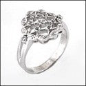Dainty ring with high polished heavy solid shank and round shaped cubic zirconias in pave and bezel setting.