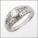 A gorgeous ring with a solid high polished shank and round diamond cubic zirconias in prong setting and round cubic zirconias in pave setting on the sides.