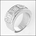 A unique design with a high polished solid shank with high quality cubic zirconias in invisible setting.