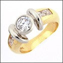High Quality Round Cubic Zirconia Center Bezel Princess Channel Two Tone 14K Gold Ring