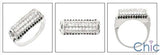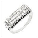 A dazzling ring with a solid high polished shank and high quality diamond cubic zirconias in pave setting and black round cubic zirconias in pave setting on the sides.