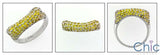 An trendy ring with a high polished solid shank with high quality round canary cubic zirconias in pave setting.