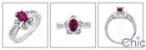 An elegant ring with a solid high polished shank and high quality oval ruby cubic zirconias in prong setting and round cubic zirconias in pave setting on the sides.