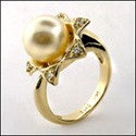 A beautiful anniversary ring with high polished solid shank a round pearl center surrounded by round high quality round cubic zirconia in pave setting.