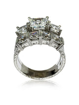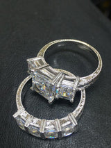 Hand Engraved 3 Stone Ring with Wedding Band Princess Cubic Zirconia