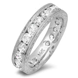 Round Cubic Zirconia Eternity Channel Hand Engraved Band