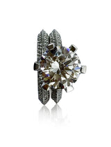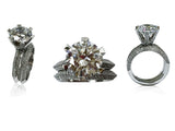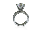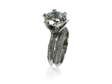 This 4.5 Carat AAA High Quality IGI certified Cubic Zirconia Engagement Ring with matching band is for people that love tall/high profile settings. The 4.5 carat cz is set in 6 prongs setting. The prongs are jeweled with micro pave small round stones. The knife shanks are each 3.25mm wide and have stones in 8 rows total. The Ring and band fit flushed together- no gaps. The engagement ring's and matching wedding band's sides stones go half way down the shanks. This matching engagement ring set has more than 250 stones in total.