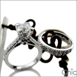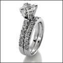0.75 Round Center Cubic Zirconia Matching Rings Set Pave Wedding Band 14K White Gold