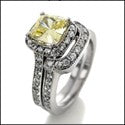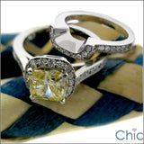 Matching Set 1.25 Canary Cushion Halo Curved Pave Cubic Zirconia Cz Ring