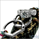 Matching Set 1.25 Ct Round Center Fitted Pave Wedding Cubic Zirconia Cz Ring