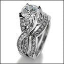 Eye-catching beautiful engagement ring with a matching band, set with AAA high quality round center in prongs, the shank is covered with pave set stones. Contoured band is set with pave set stones as well