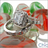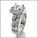 Matching Engagement Ring Set 1.25 Princess Center Cubic Zirconia 14K White Gold Ring