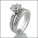 1.25 Round Center 6 Prong Tiffany Style Cubic Zirconia Engagement Ring Set 14K W Gold
