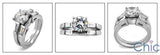 A striking matching band with high polished solid shank, with high quality round cubic zircoina center stone, and with high quality cubic zirconias tapered baguettes.