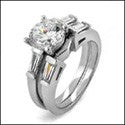 Matching Set 1.5 Ct Round Baguettes in Channel Cubic Zirconia Cz Ring