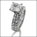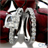 Matching Set 1.5 Cushion Center Share Prong Round Wedding Cubic Zirconia Cz Ring
