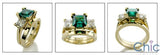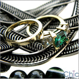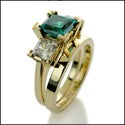 Matching Set 1.5 Green Emerald Princess 3 Stone Cubic Zirconia Cz Ring