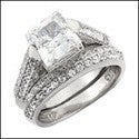 Matching Set 1.5 Princess Center Channel Ct Pave Fitted Cubic Zirconia Cz Ring