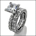 Matching Set 1.5 Princess Center Eternity Style Cubic Zirconia Cz Ring