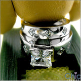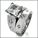 Matching Set 1.5 Princess Center Stone Burnished Cubic Zirconia Cz Ring